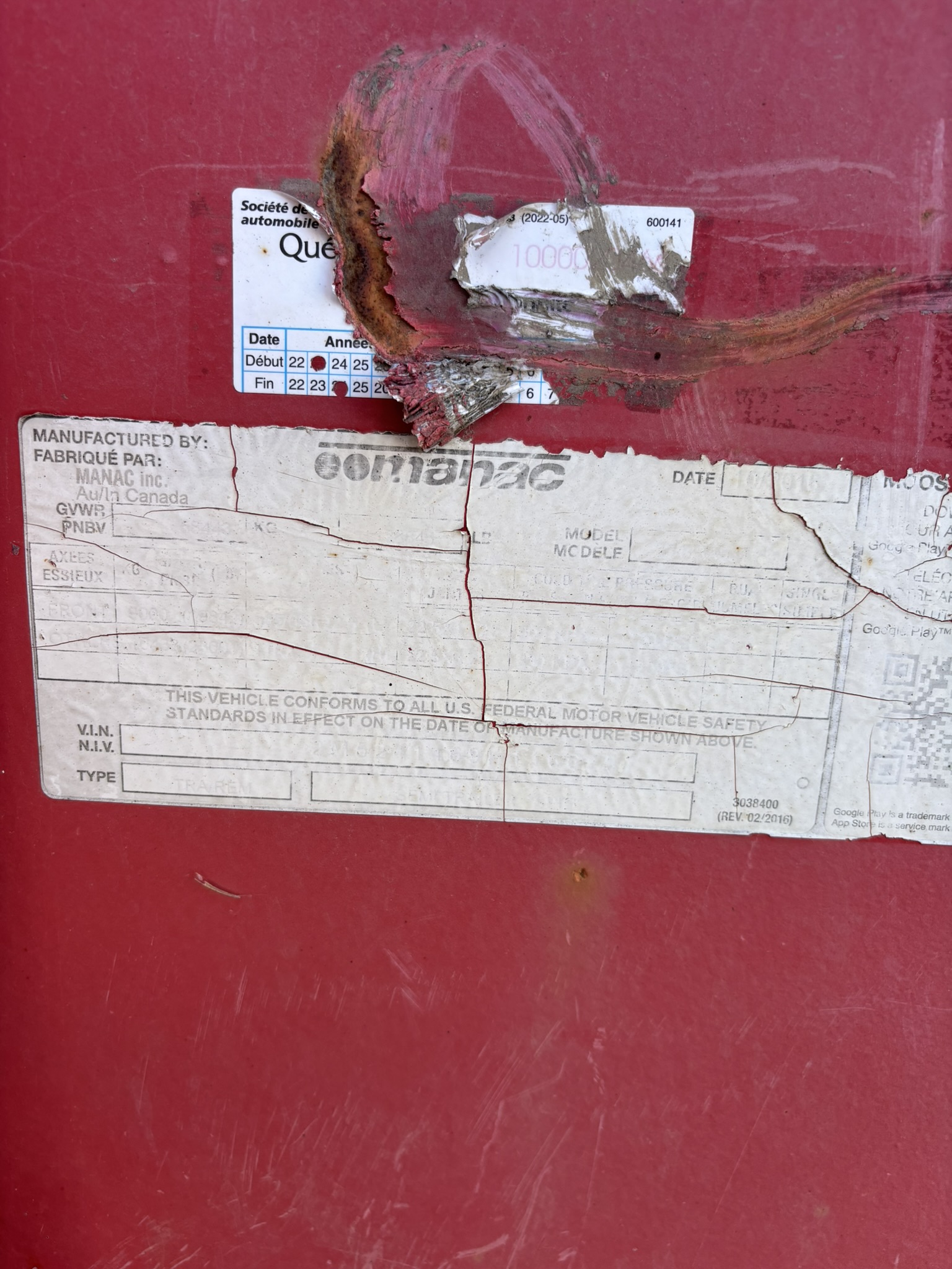 Remorque à bois de marque Manac, modèle 23448, année 2017, n/s : 2M5241469H1166257. La remorque se trouve à Chicoutimi.