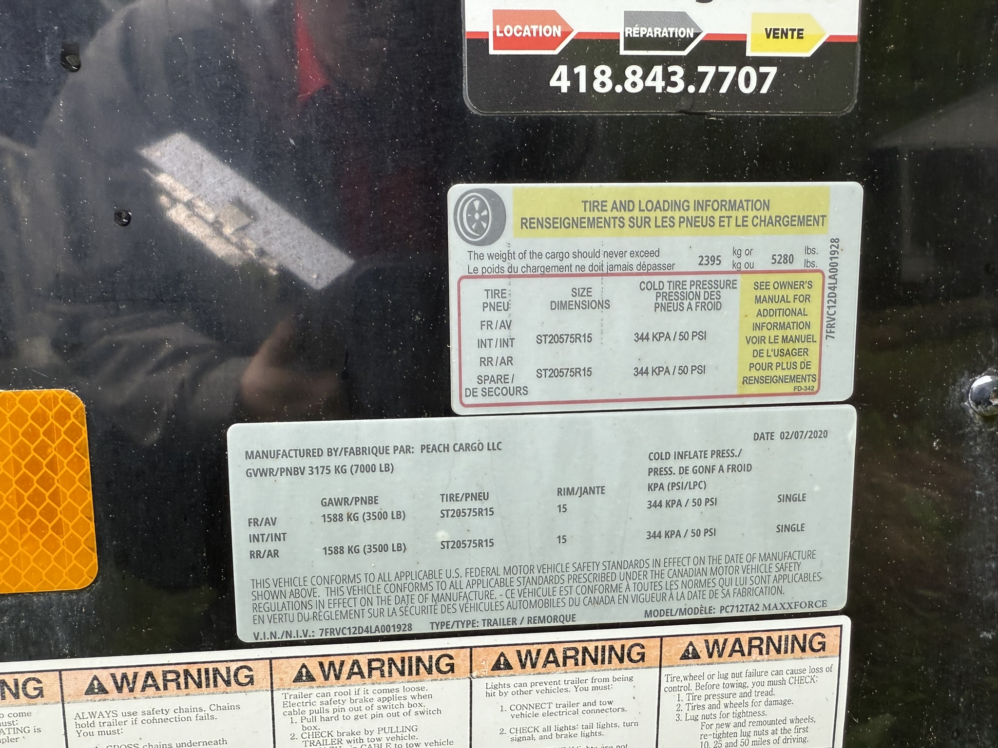 REMORQUE FERMÉE PEACH CARGO, MODÈLE PC712TA2 MAXXFORCE, ANNÉE 2020, DOUBLE ESSIEU, NUMÉRO DE SÉRIE 7FRVC12D4LA001928